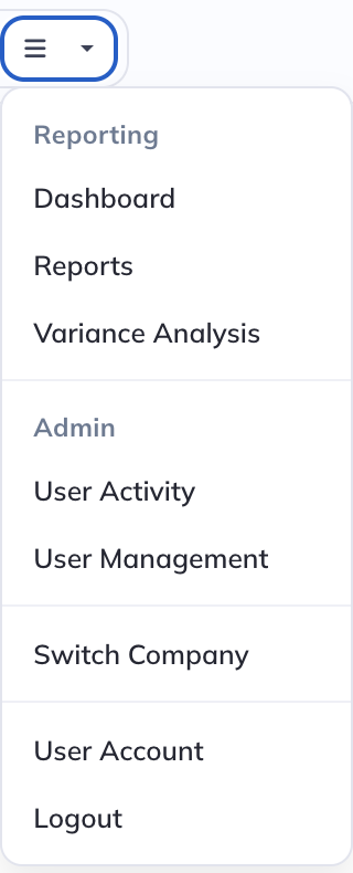 The menu on the right allows you to access the Reporting and Admin areas of Modeloptic, and replaces the old left panel navigation: