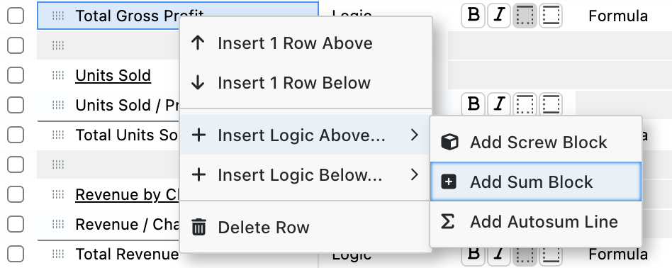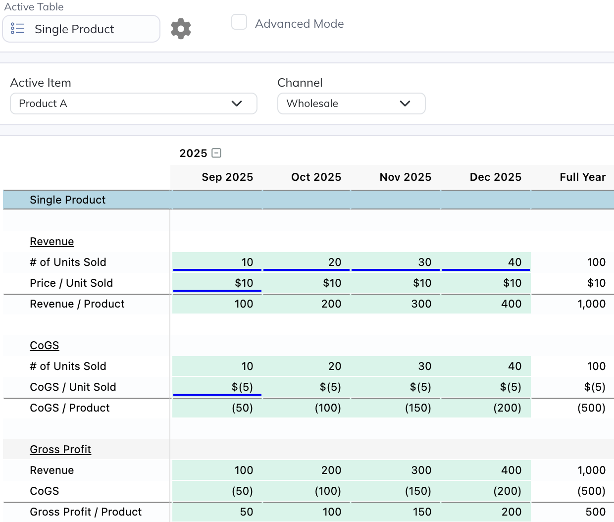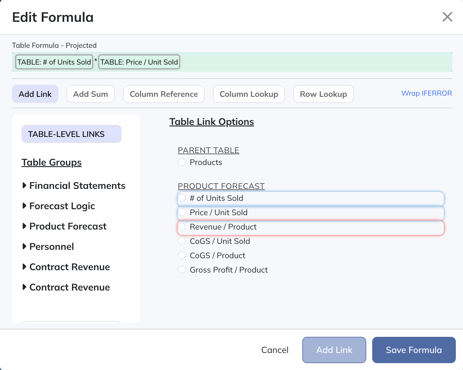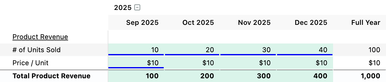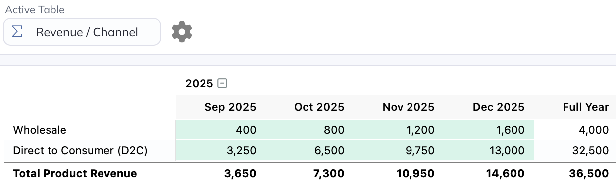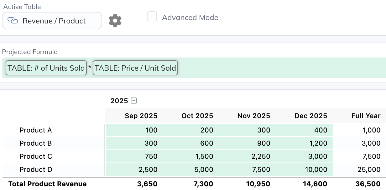 If you have a simple forecast or otherwise prefer this mode of forecasting, you're free to stick to just Free-Form tables if you'd like. For anything beyond the basics though, utilizing the below table types where appropriate will generally be advantageous (like when you need to forecast sales for more than one product, for example).