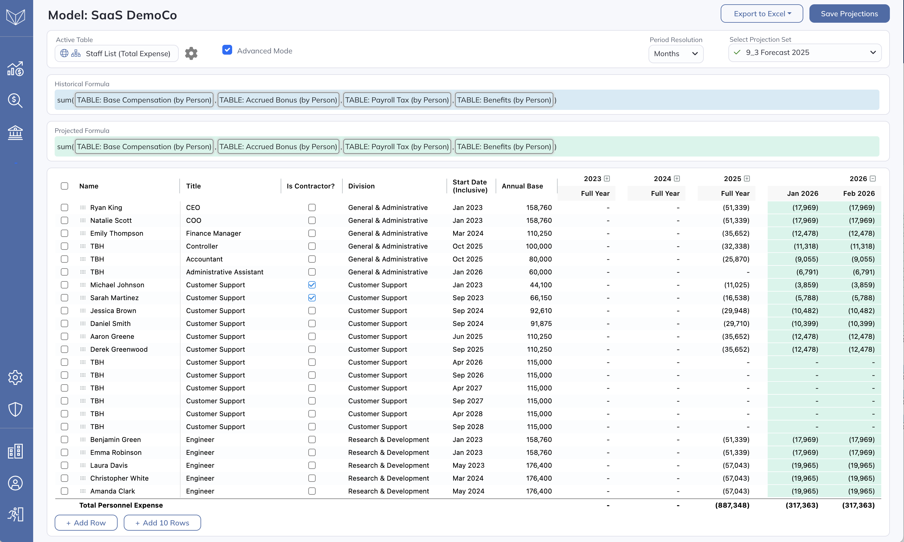 Utilizes a table-centric structure for forecasting collections of similar items (like employees, customers, product SKUs, etc), and for operating on them as a group instead of as individual lines.