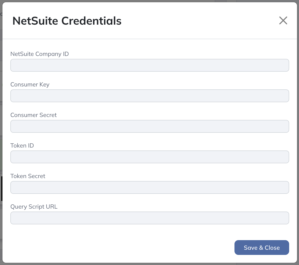 Click on "Edit NetSuite Credentials", which will open up the following screen: