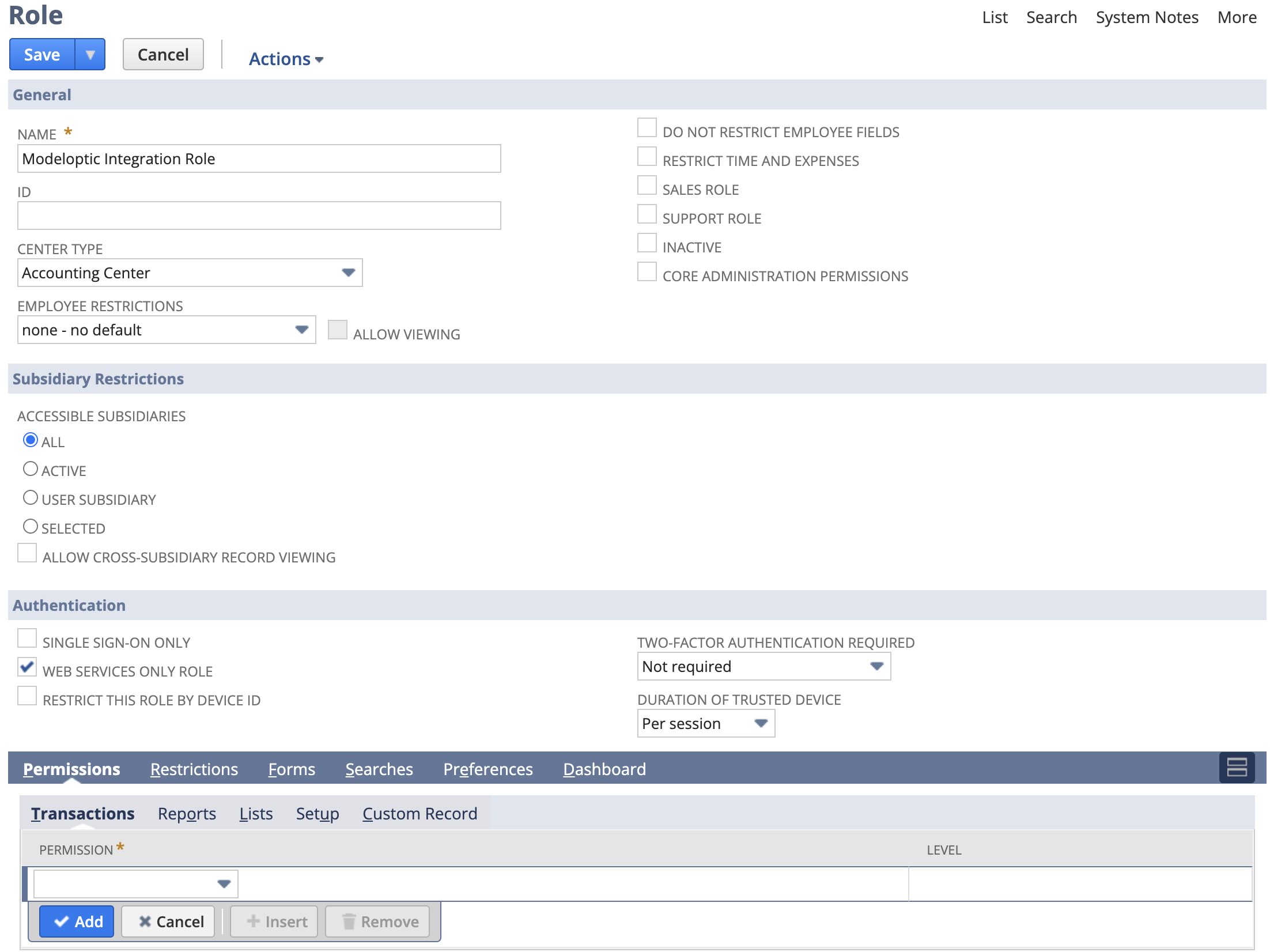 The instructions below will walk you through how to authorize Modeloptic to retrive data from your NetSuite account. If you'd like help on any part of this process or run into any issues, please don't hesitate to contact us and we'll be happy to assist!
