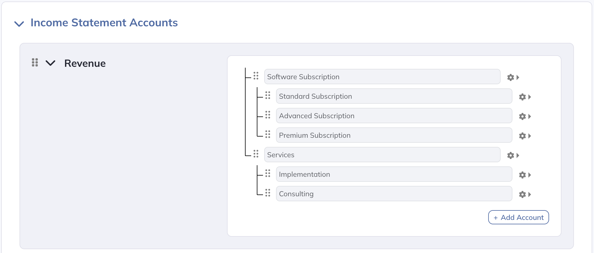 For more detail on how to build out your chart of accounts, including how to create linkages between the three financial statements, see the Chart of Accounts section of the documentation.