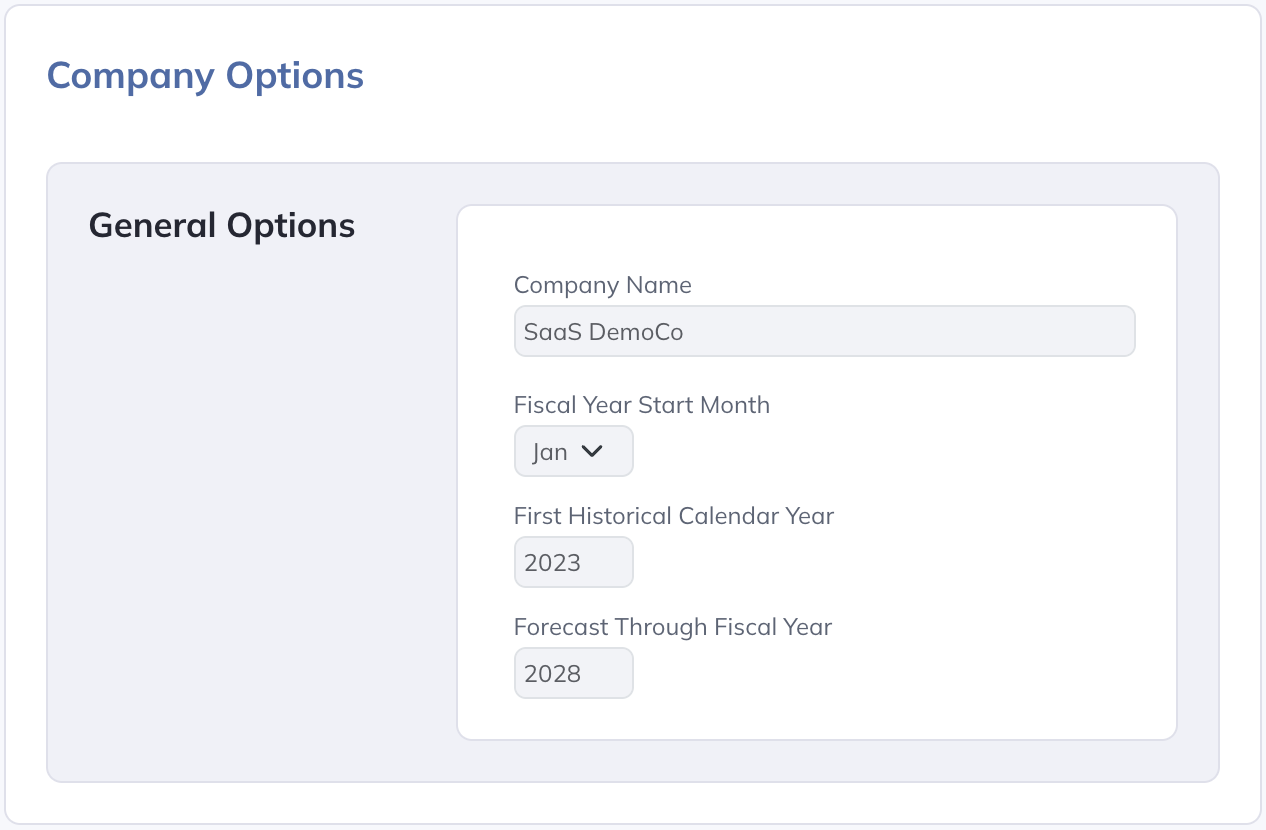 Make sure that the First Historical Calendar Year that you select here corresponds to the first year of data in the Excel file(s) containing your financials that you'll be uploading. You can import as much history as you'd like, but we recommend importing the past 2-3 years as a starting point.