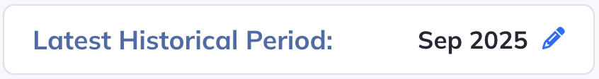 To upload your data, navigate to the Historical Data page. Make sure your Latest Historical Period is set to the most recent period for which you'd like to load in data:
